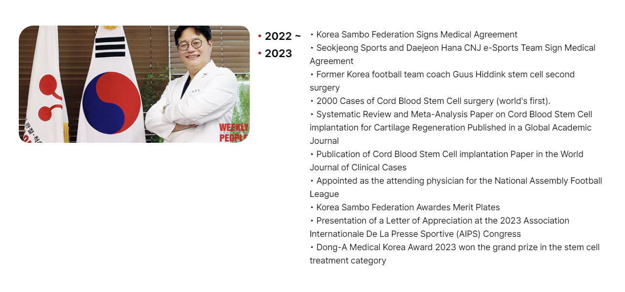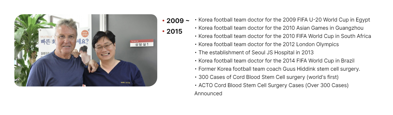 Hello, I am Dr. Jun Seop Song, President of Gangnam JS Hospital. We have treated and cured over 3000 arthritis patients since our first arthritis stem cell surgery for soccer director Hiddink in 2013.